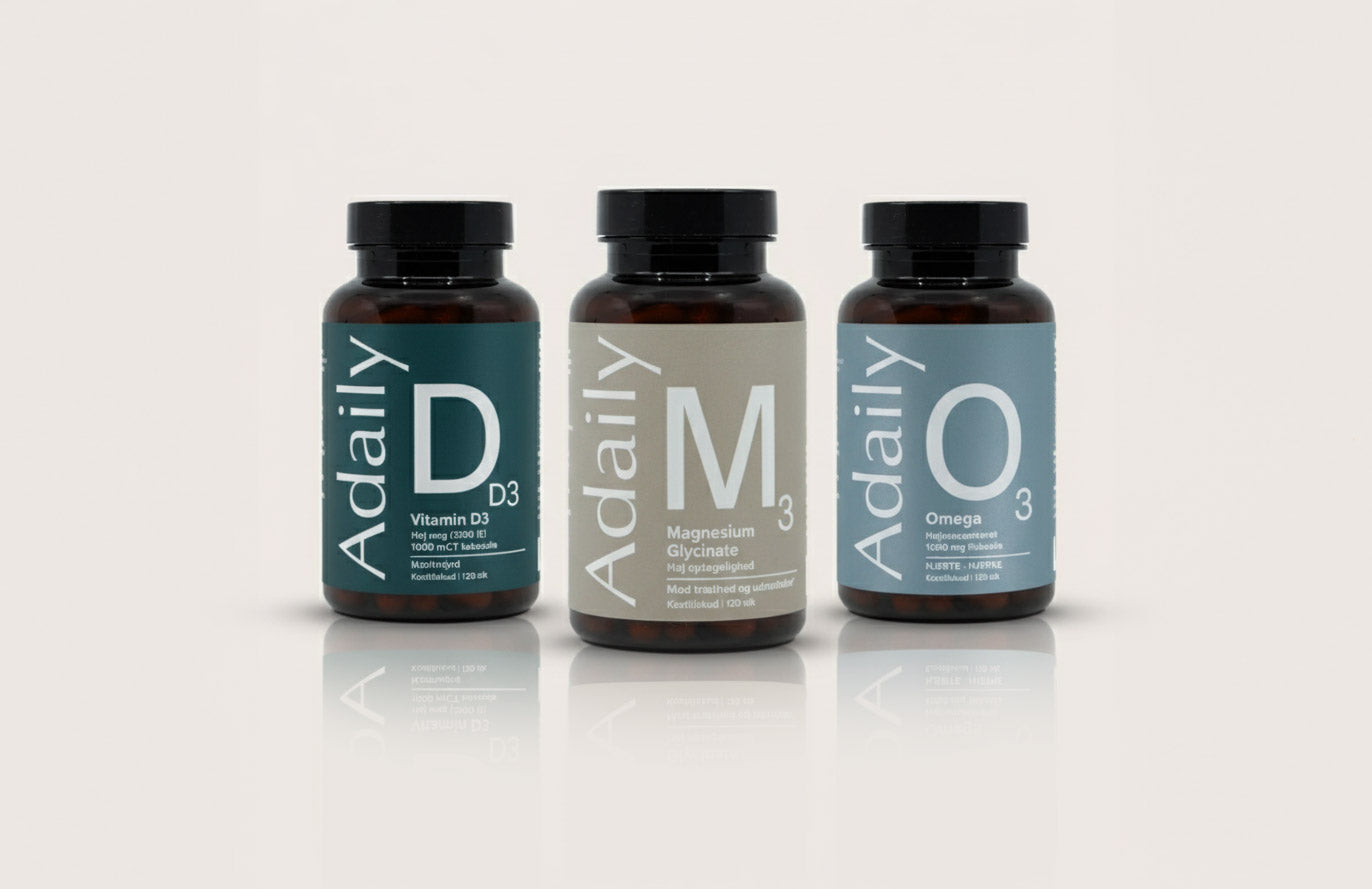 Adaily er en serie kosttilskud udviklet i EU med fokus på renhed, dokumenteret biotilgængelighed og råvarer af høj kvalitet.